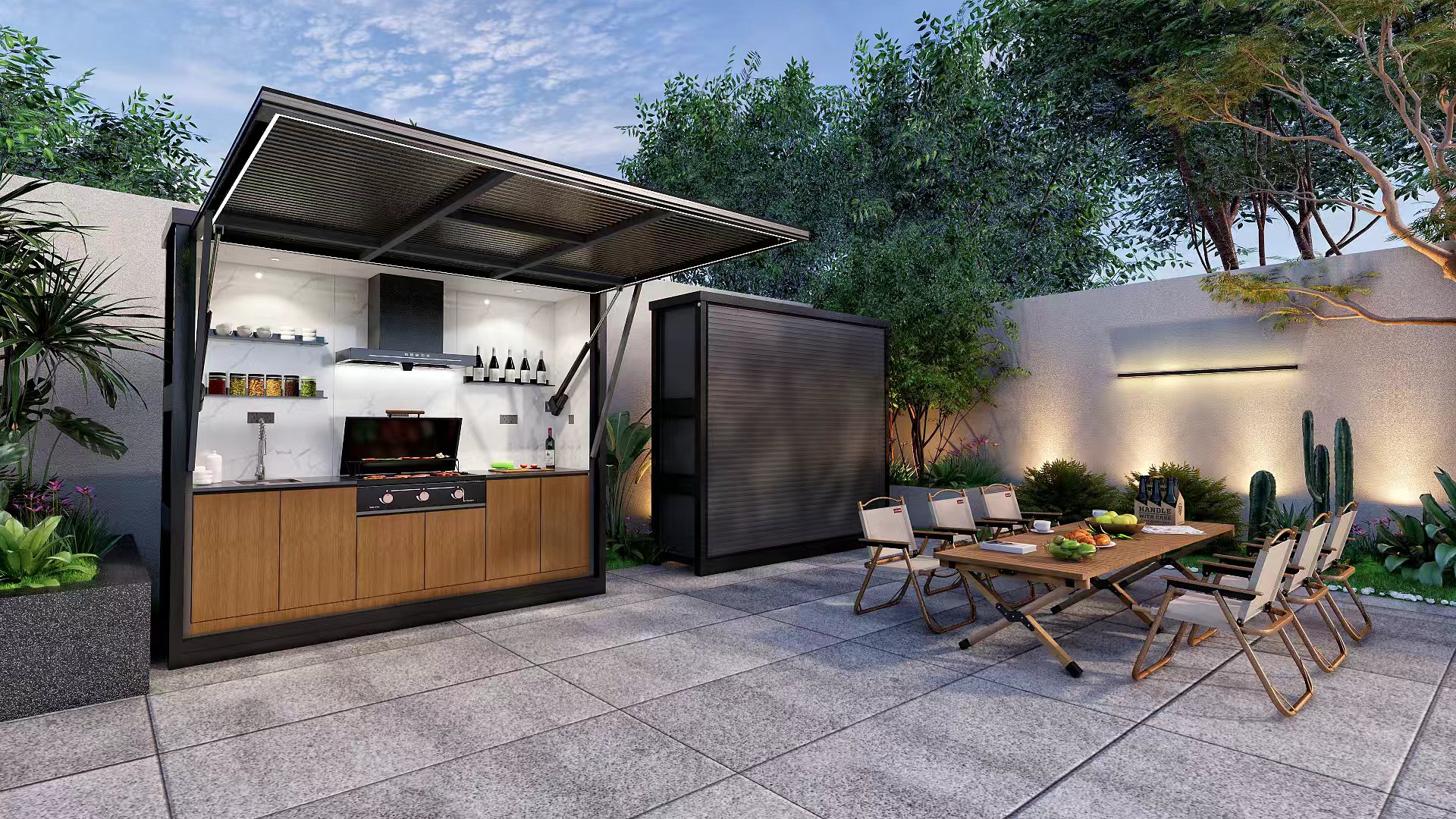“Modern durability meets social space. The ideal outdoor kitchen for every family celebration.”